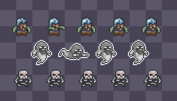 A dwarf undead sprite sheet with three characters you can use for any 2d game you are building!