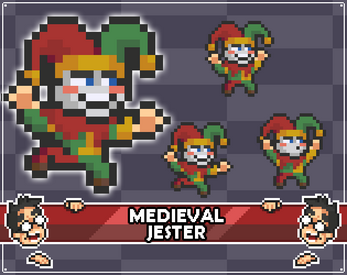 2D Pixel Art Medieval Jester Sprites